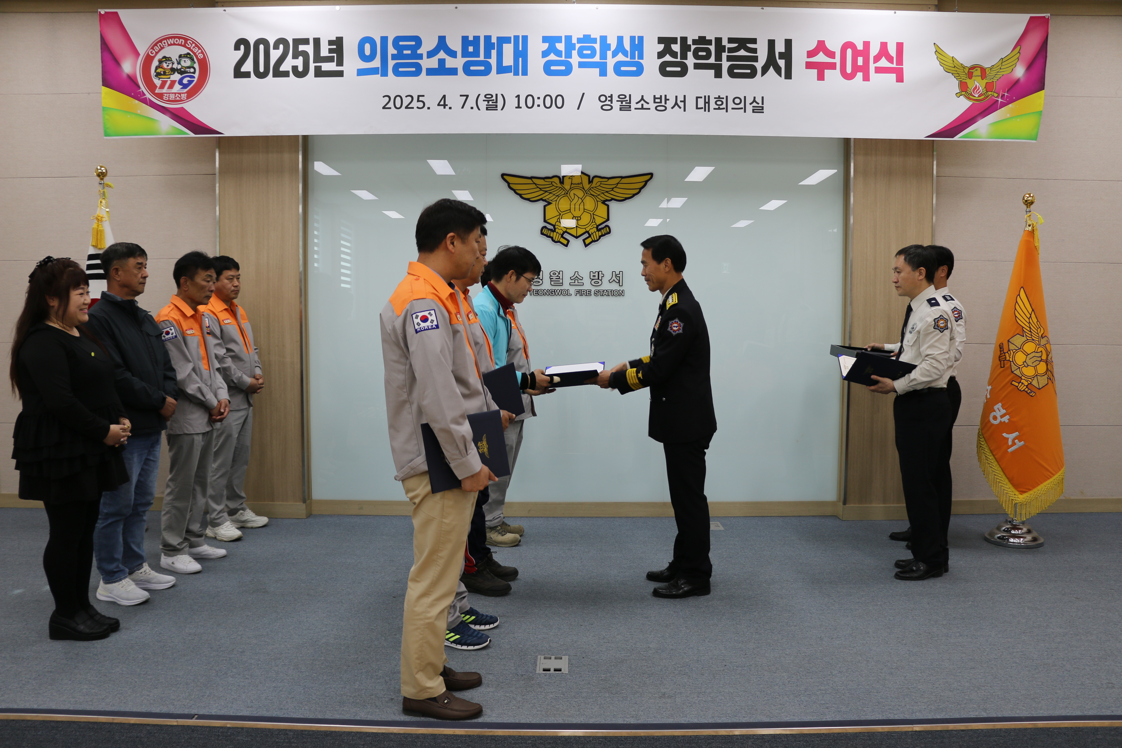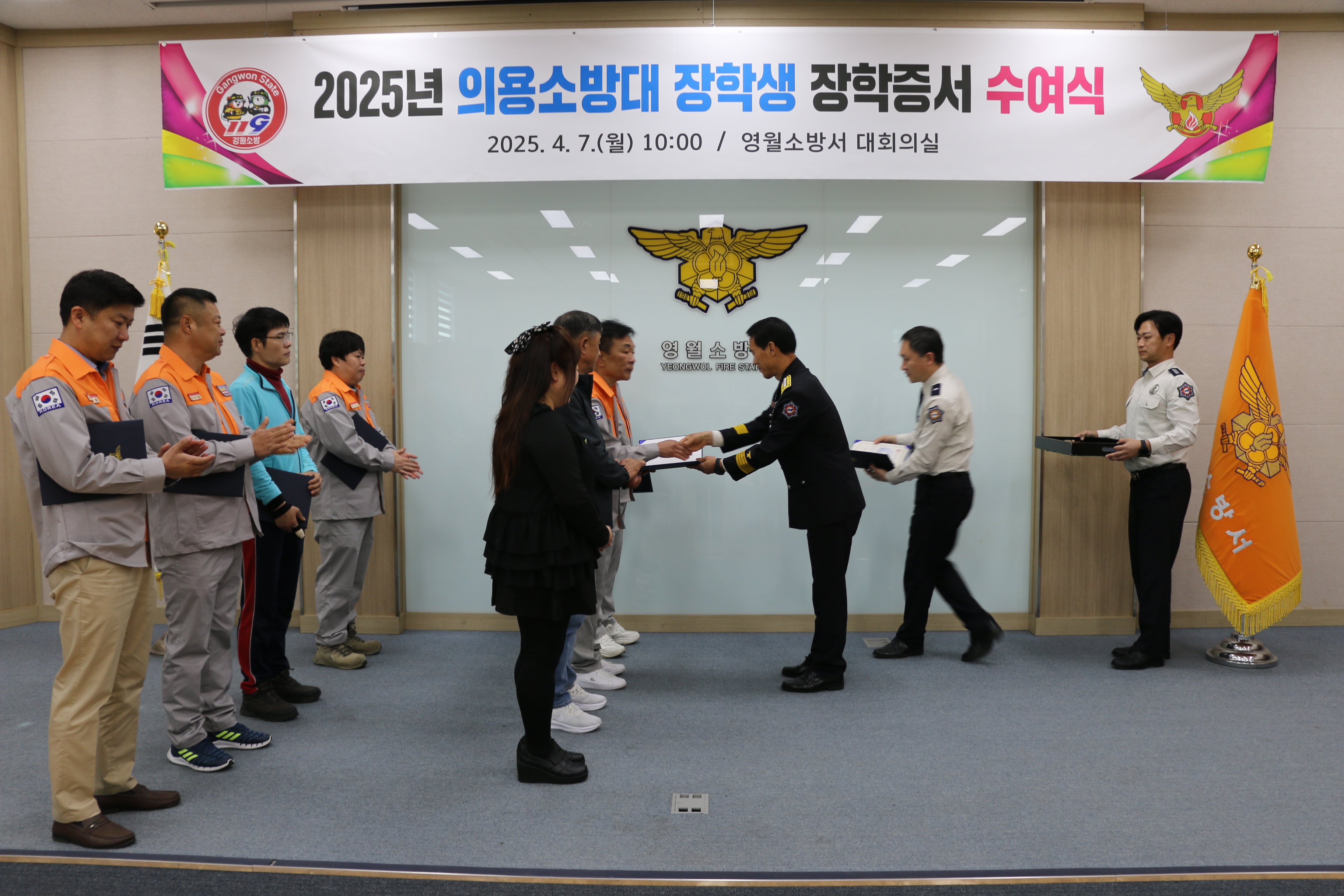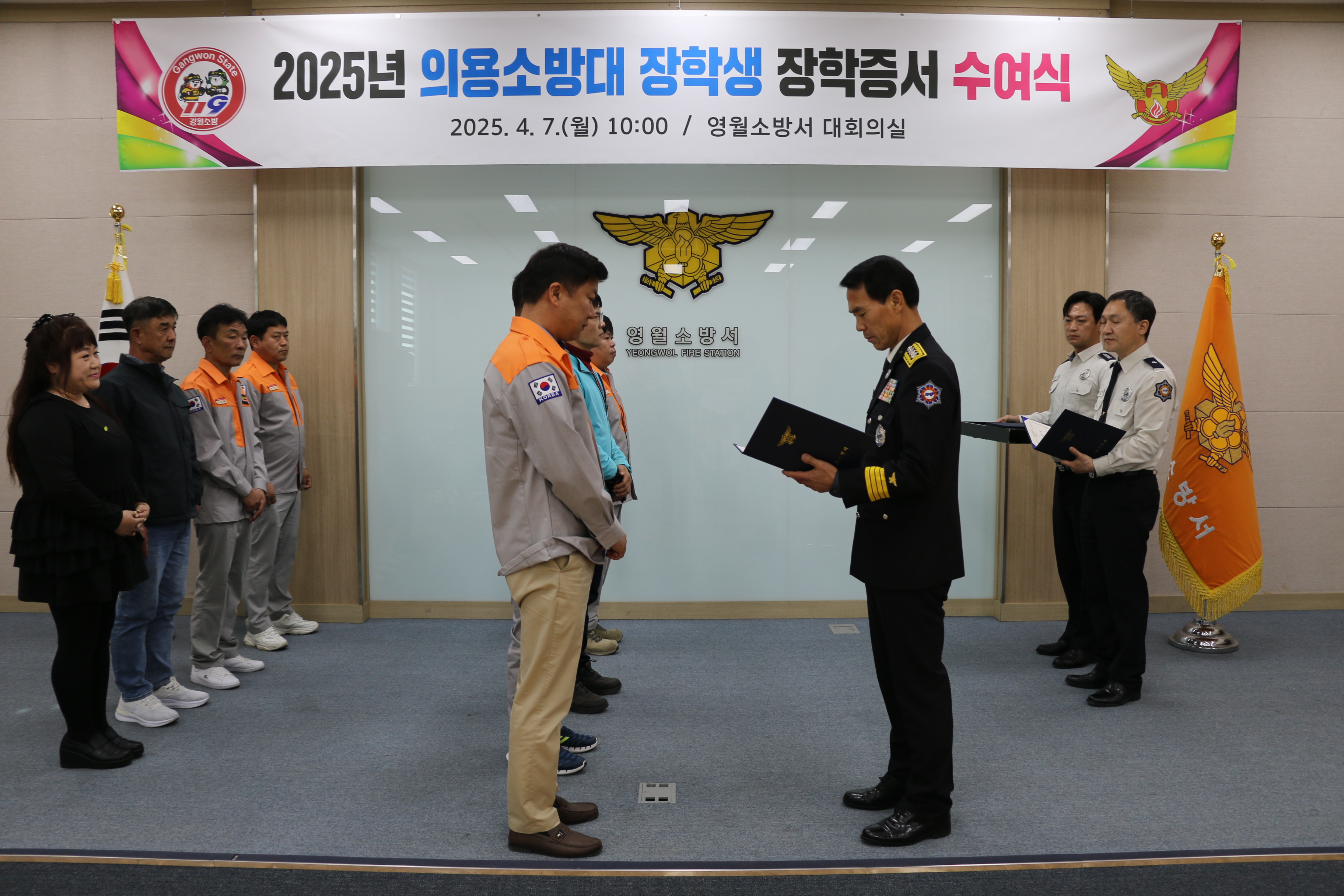 | 1274 | 의용소방대 장학생 장학증서 수여식 (25년 4월 7일) | 영월 | 2025-04-07 | 302 | |
