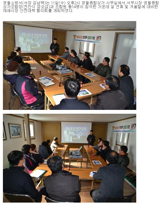 | 549 | 영월군 재래시장 안전대책 협의회 개최(1. 11) | 예방 | 2012-01-11 | 783 | |