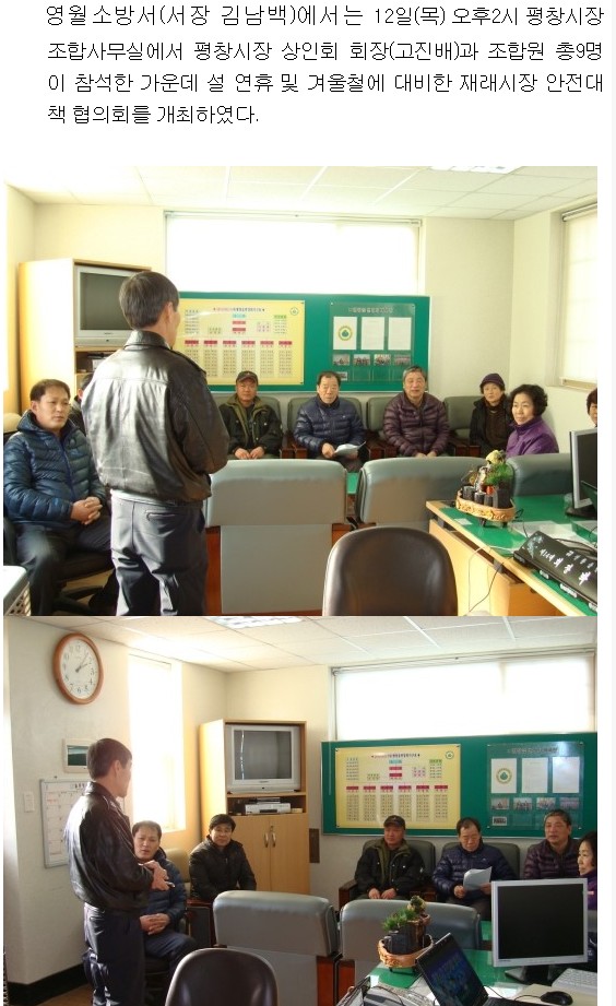 | 555 | 평창군 재래시장 안전대책 협의회 개최(1. 12) | 예방 | 2012-01-12 | 799 | |