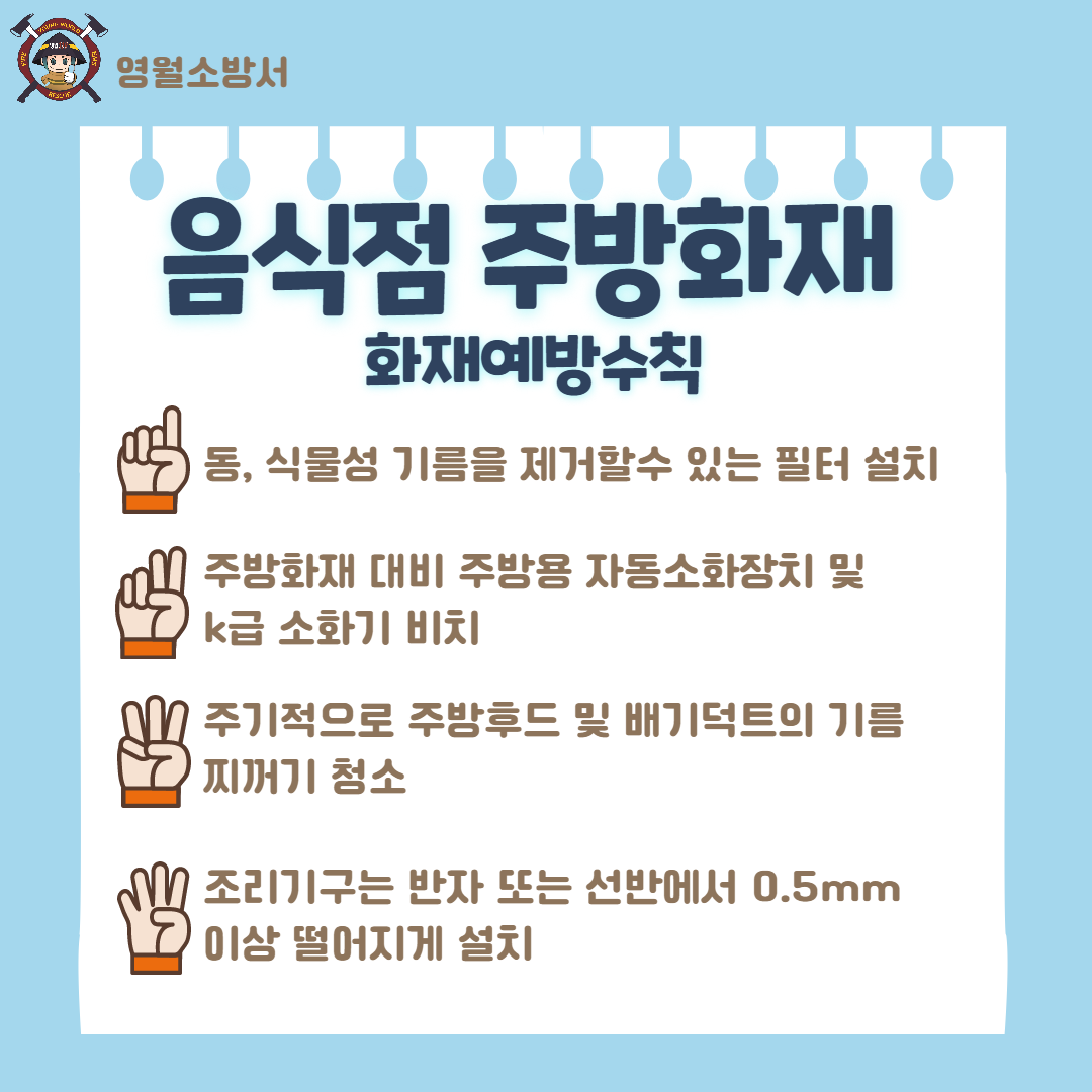 영월소방서에서 오늘 16일 음식점 화재 주의를 위한 점검을 당부합니다!