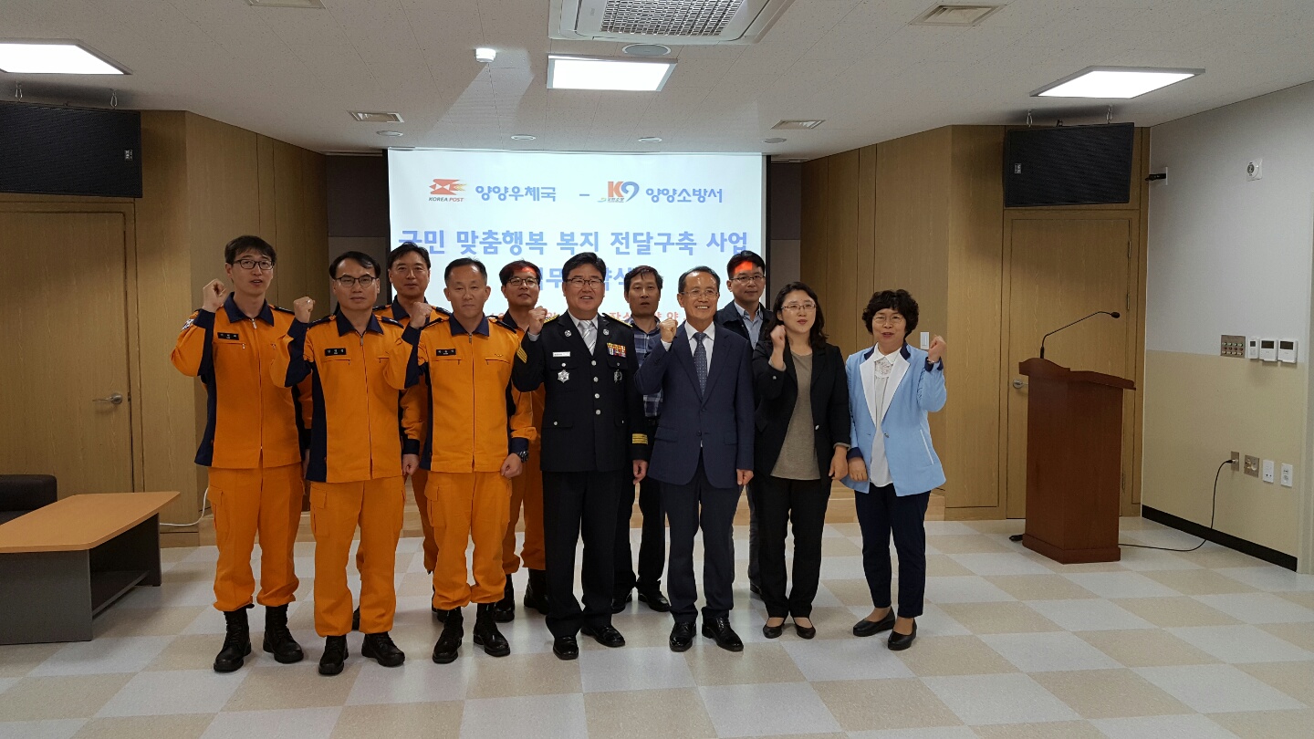 | 29 | 양양소방서, 양양우체국과 MOU 체결 상호협력 다져 | 예방 | 2016-10-05 | 724 | |