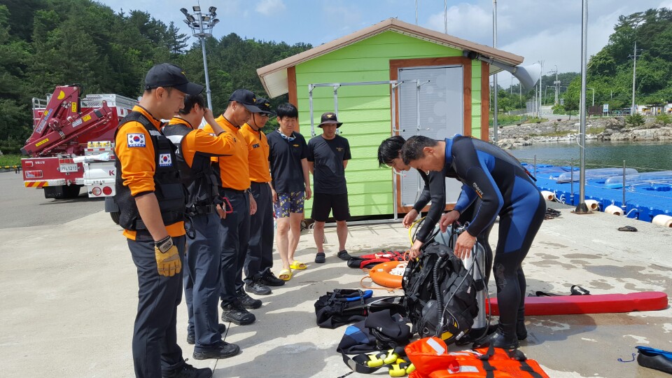 이번 훈련은 수산항 수난사고 발생을 가상하여 수난구조장비를 활용한 익수자 수색 및 구조 후 심폐소생술 실시까지 일련의 과정을 구조대원이 숙달하여 전문적인 구조술 습득에 목표를 두고 진행하고 있다.