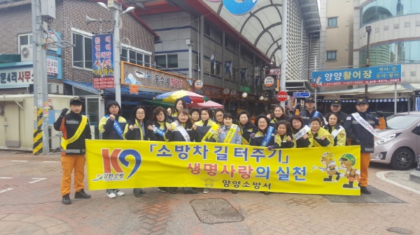 이번 훈련은 제406차 민방위의 날 훈련과 연계해 소방차의 재난현장 도착시간을 단축하고자 관내 차량정체구간(양양읍 일대)에 대해 소방차량이 출동하는 상황을 가정해 국민 참여훈련 형식으로 실시됐으며, 훈련과 함께 캠페인을 통해 군민들에게 소화기 등 주택용 소방시설 설치, 소방차 길 터주기의 중요성 및 불법 주·정차 금지를 홍보하는 등 다양활 활동을 펼쳤다.
