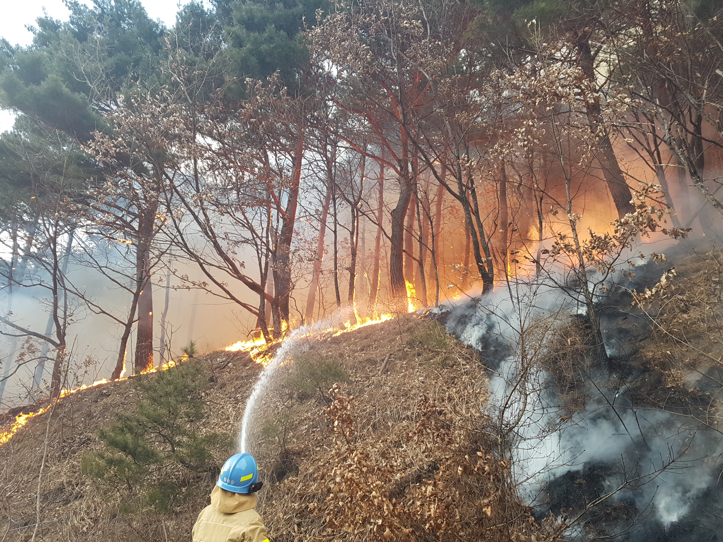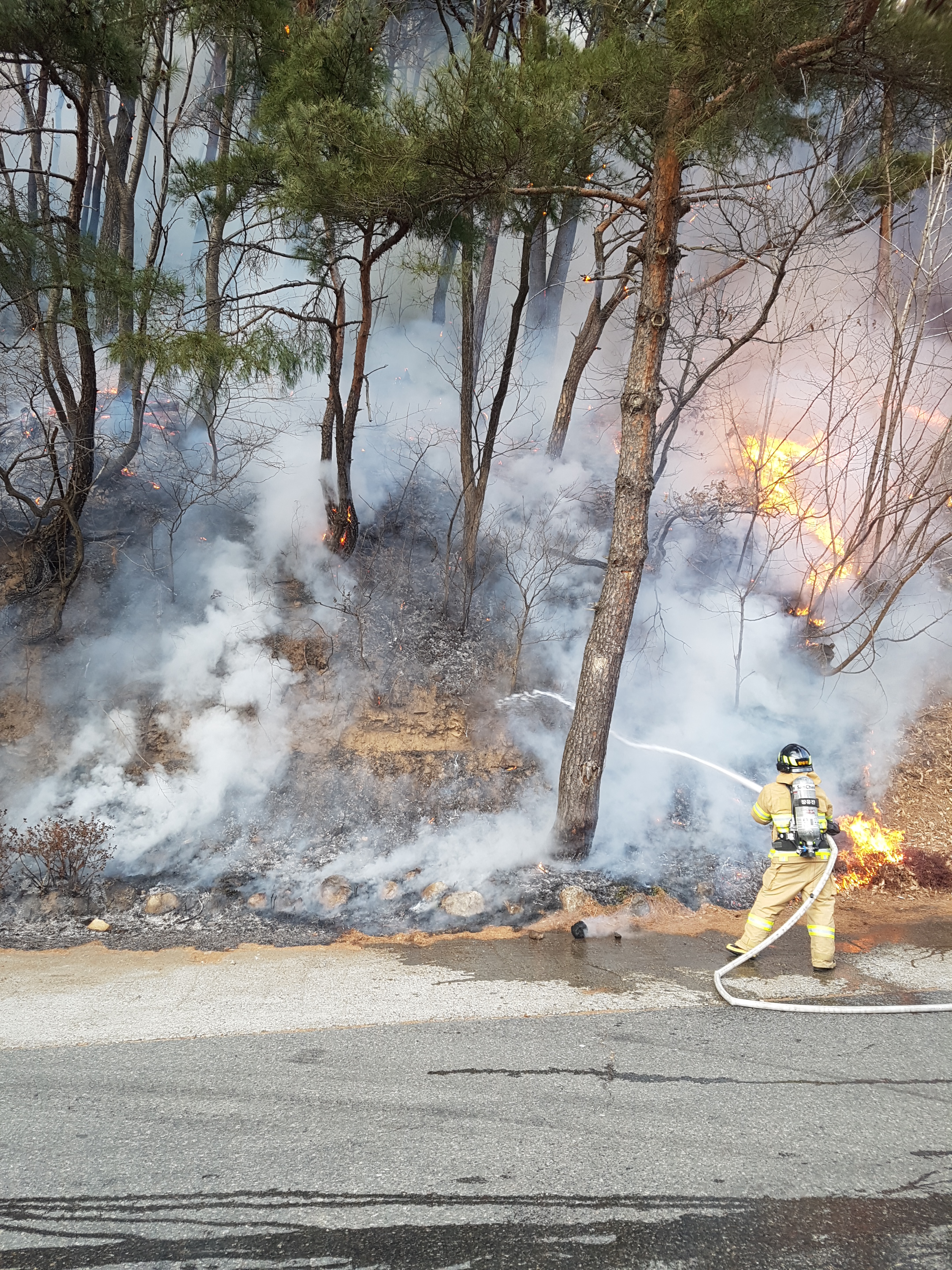 송천리 산불 진압현장