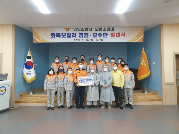 한편, 낙산사에서도 화목보일러 점검 보수단을 위하여 지원금 1750만원을 기탁하며, 화재예방을 위한 화목보일러 점검 보수 사업에 적극 동참하였다.